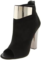 The modern futuristic styling of the Giuseppe Zanotti I17000 bootie adds a knock-out accent to a variety of ensembles from casual designer denim and cardigan pairings, to cocktail dresses with an edge. A glossy, metal plate adorns the vamp on the towering suede upper with peep-toe front. A leather sole is flexible and supportive as you strut.