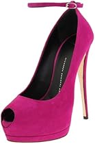 Tower above the rest in high-fashion, high-quality style in the I16090 peep-toe pump from couture designer Giuseppe Zanotti. A double-platform gives amazing lift to match the striking 5.5 inch heel. The supple suede upper and leather sole are flexible and contouring with each step while a single slim-strap embraces the ankle.
